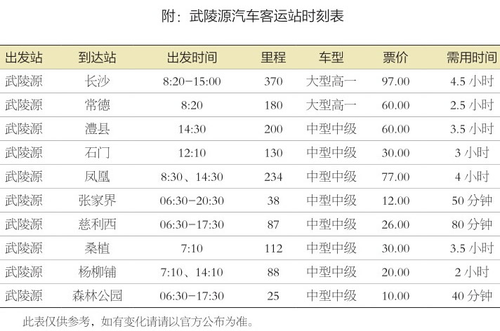 武陵源汽車(chē)站發(fā)班表及發(fā)車(chē)時(shí)間