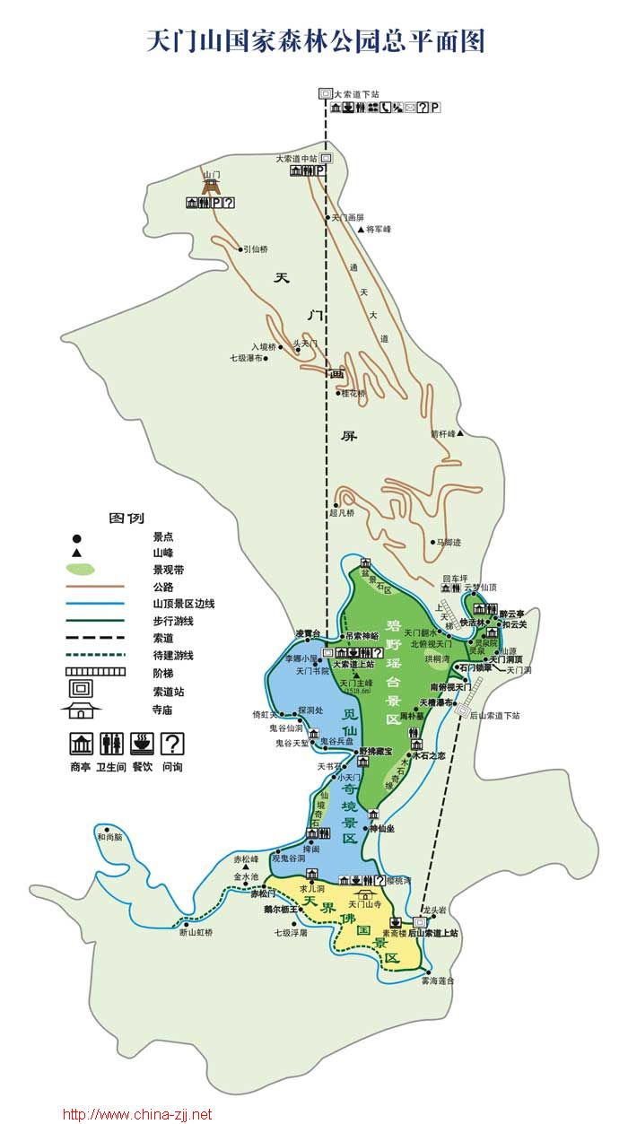 天門(mén)山旅游圖,天門(mén)山游覽平面圖