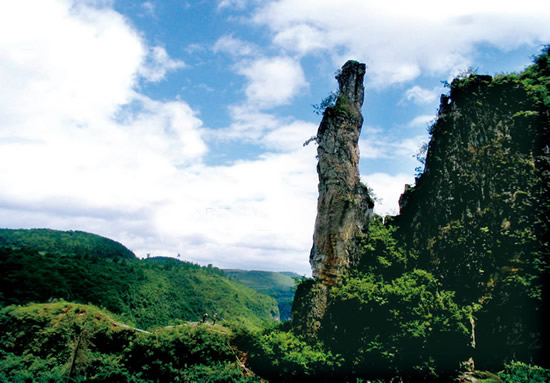 烏龍山 景點 烏龍山景區(qū)距鳳凰古城28公里,《烏龍山剿匪記》故事發(fā)源地。位于湘黔邊界算深山峽谷之中。這里由于人跡罕至,至今尚較完好地 保存著原始生態(tài)之風貌。景區(qū)主要由乾山仙柱、坤山玉女洞、夫妻觀景巖、五子峰、烏龍洞、練功臺等諸多風光的奇異的怪石、懸崖、石柱、奇峰組成。還有蜿蜒秀麗的烏巢河峽谷、 湖南鳳凰烏龍山龍馬瀑布、梯子坎瀑布和烏龍洞清泉。 春天:景區(qū)內(nèi)到處可見綠葉新生,到處可聞鳥語花香; 夏天:景區(qū)內(nèi)曲徑幽涼,可以在巖穴洞府中避暑,在郁郁蔥蔥的高丘林蔭下休息沐風; 秋天:景區(qū)內(nèi)白云悠悠,可以在山間小道上采摘紅葉野果,尋覓詩意; 冬天:景區(qū)內(nèi)莽莽蒼蒼,可以遠眺山石險峰,如遇雪霽天氣,滿天飛雪的爛漫景色。