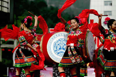 苗族花鼓 苗族花鼓源于唐代,至今已有一千多年的歷史。為什么叫花鼓?因無文字可考,據老年的花鼓師傅說,幼年他們跟上一輩人學鼓時,鼓上都貼有各種鮮艷的花瓣,擊鼓,不準擊落花瓣,這便要上乘的功夫。也許這就是花鼓的由來。