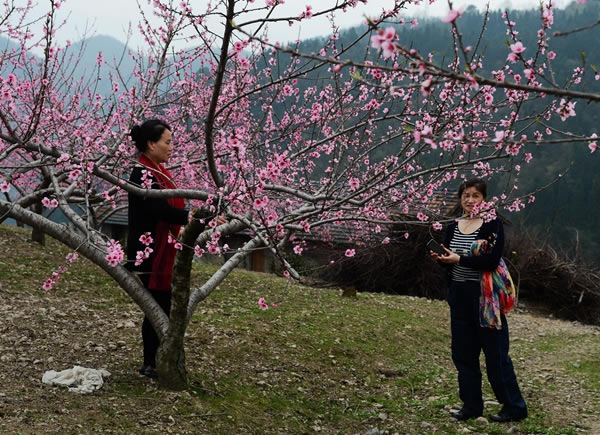 農(nóng)場主人提醒賞花客,清明節(jié)期間剛好是天子山桃花盛開的季節(jié),游客可乘景區(qū)環(huán)保車在農(nóng)場路段下車進(jìn)入場內(nèi)賞花。