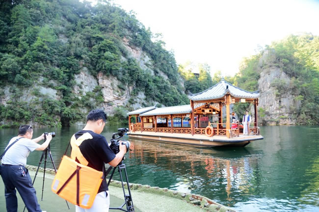 在武陵源期間,攝制組一行先后對武陵源天子山、袁家界、百龍?zhí)焯、寶峰湖、黃龍洞、溪布老街等自然人文景區(qū)景點進行了立體拍攝,屆時武陵源神奇美麗的地質(zhì)地貌風(fēng)光、多彩多姿的民俗非遺文化,都將在專題片中得到很好的展現(xiàn)。